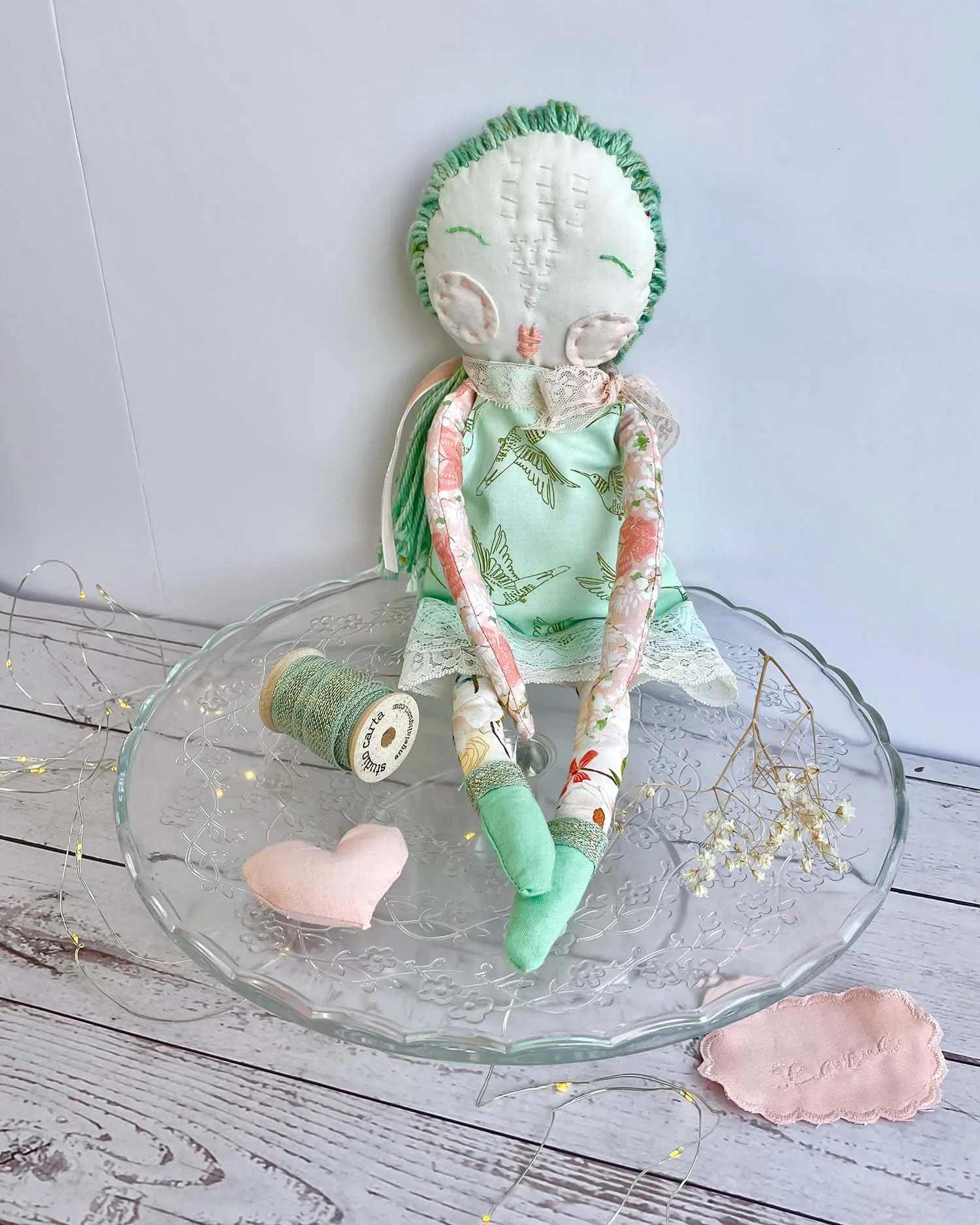 As a kid, I was often called a ragamuffin. Raised by hippie parents who valued non-capitalist living, we thrifted and made things ourselves, and were a little bit wild and untamed. This doll series is a celebration of the young me who wandered through wildflowers and made things with her hands—a ragamuffin. She may be you too.