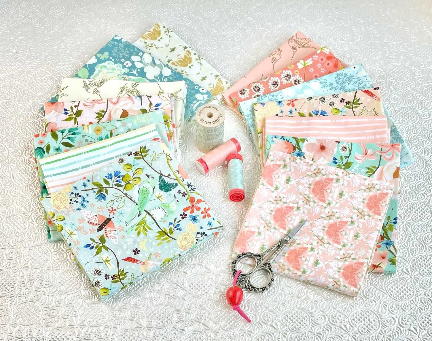 I’m over the moon to share with you my Serenity Blooms fabric line with Poppie Cotton! It releases in January 2025, and will be available in quilt shops near you. Serenity Blooms was inspired by my wild gardens, and tells the story of serenity amidst winged creatures and blooms. You’ll feel the stillness and reflection that comes from sitting in a garden meadow, vitality blossoming all around you, the joy of listening to bird songs, and the bliss of sowing seeds for future growth.