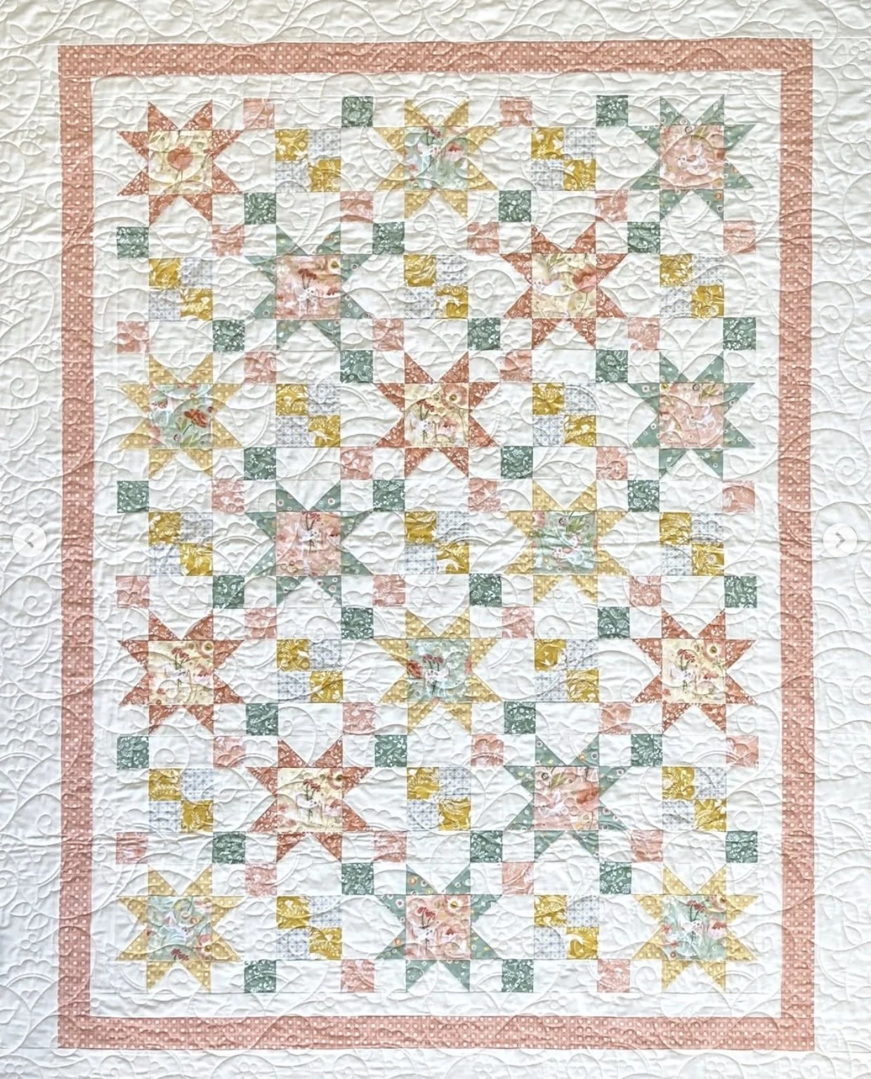 Finished quilt measures 57" x 73" (lap or nap sized).
